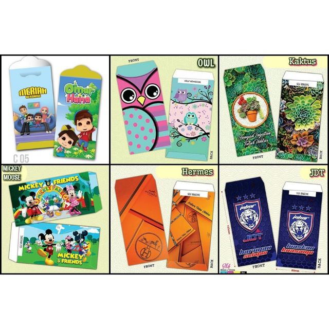Kami menjual pelbagai design sampul raya kartun animasi.